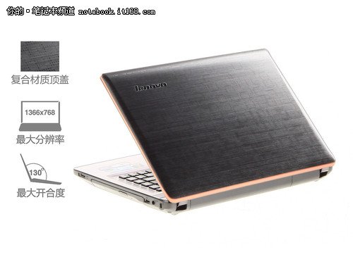 联想该机一体成型的外表面和键盘面,采用仿碳纤维材质,不仅使笔记本更加时尚耀眼,而且更坚实耐用,更为轻便。Y400N首次使用黑红配色方案,使 彪悍