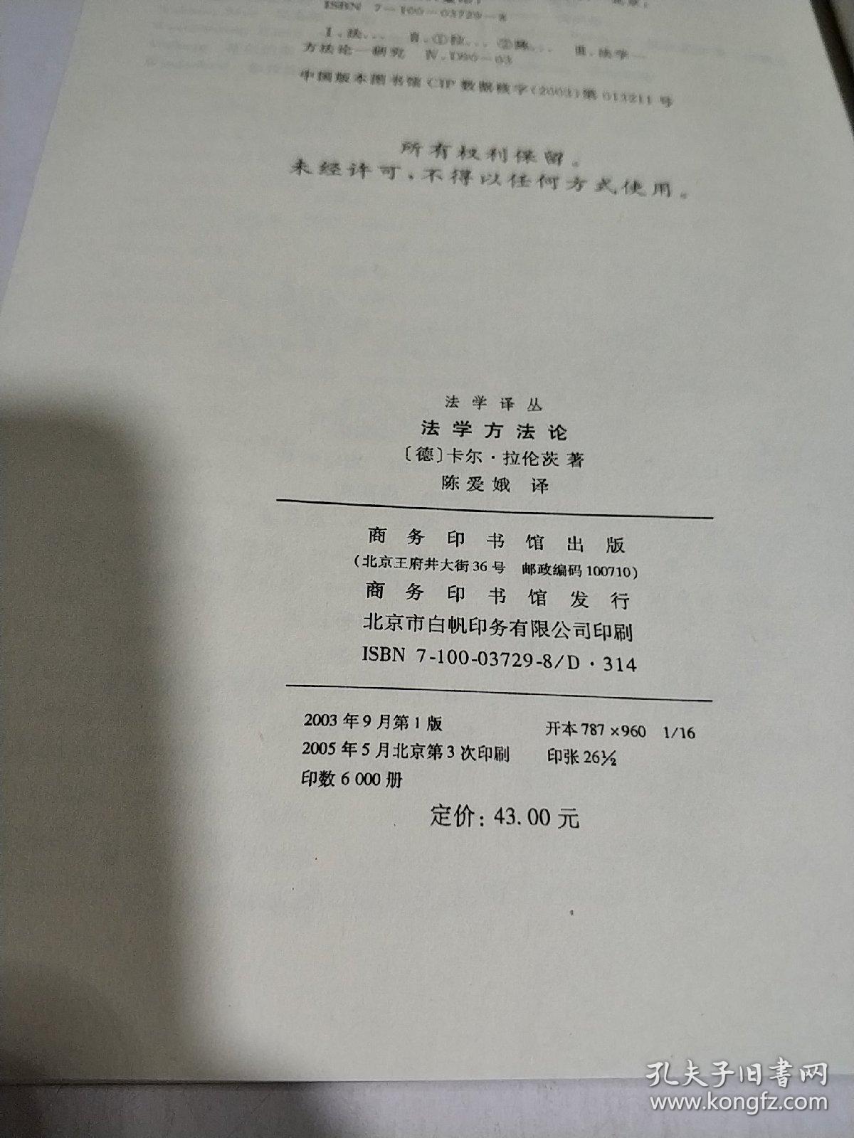 法学方法论(拉伦茨)_网上买书_收藏品交易