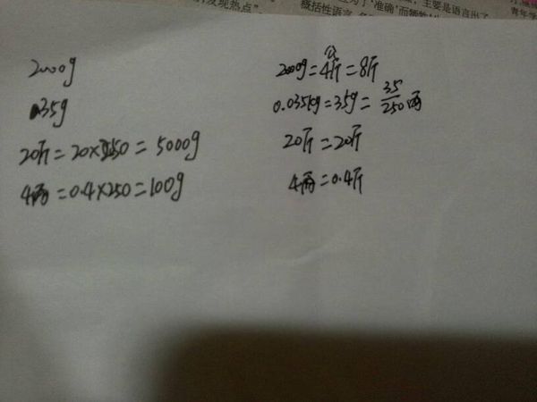 [最佳答案] 因为 1斤=500g 2斤=1kg 所以 20斤=10kg 因为 1t=1000kg 所以 20t=20000kg Ps:不知道你要问哪个,所以全都打上了
